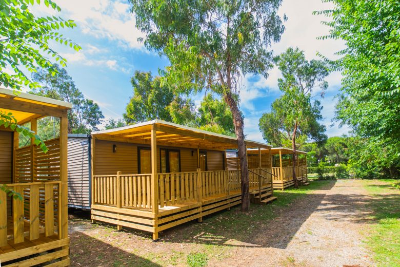 Dreizimmerwohnung von etwa 35 m², die bis zu 5 Personen bequem beherbergen kann. Besteht aus einem Wohnbereich mit Kochnische und Sofa, einem Schlafzimmer mit Doppelbett, einem Schlafzimmer mit drei Einzelbetten (eins davon erhöht), 2 Badezimmern mit WC, Waschbecken und 2 Duschkabinen, TV, Mikrowelle und Klimaanlage (gegen Gebühr). Außenveranda von etwa 30 m², überdacht und mit Gartenmöbeln ausgestattet.