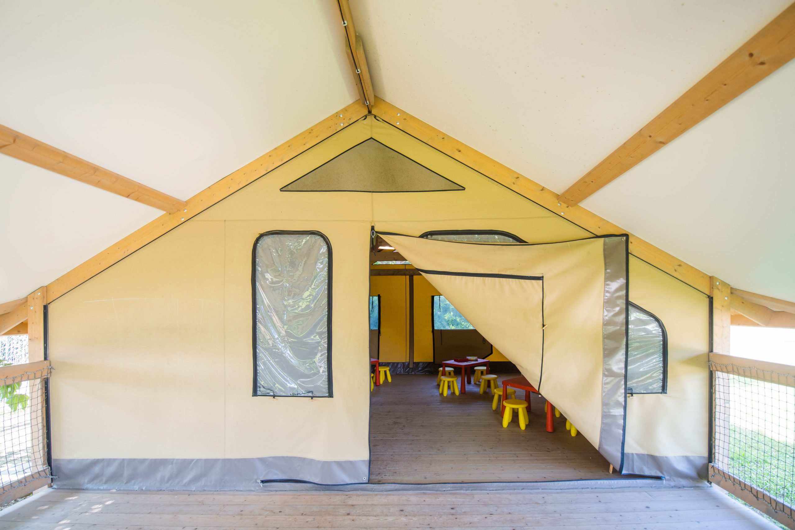 Just 10 minutes on foot from the beach, awarded with the Blue Flag for cleanliness and services offered, the campsite features brand-new bungalows that can accommodate from 2 to 7 people.